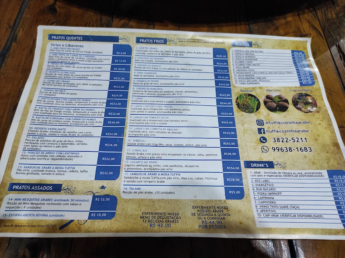 Tuffik Cozinha Árabe offers a rich selection of Middle Eastern-inspired dishes that cater to a variety of tastes. Their Kibe Frito is a popular choice, a deep-fried delight packed with seasoned meat and bulgur wheat, perfect for those craving a crispy, savory snack. Another standout is the Falafel, crispy chickpea patties that are both flavorful and satisfying. For a lighter, yet equally delicious dish, the Mini Mesquita brings a refreshing combination of ingredients that beautifully represent the flavors of the region.